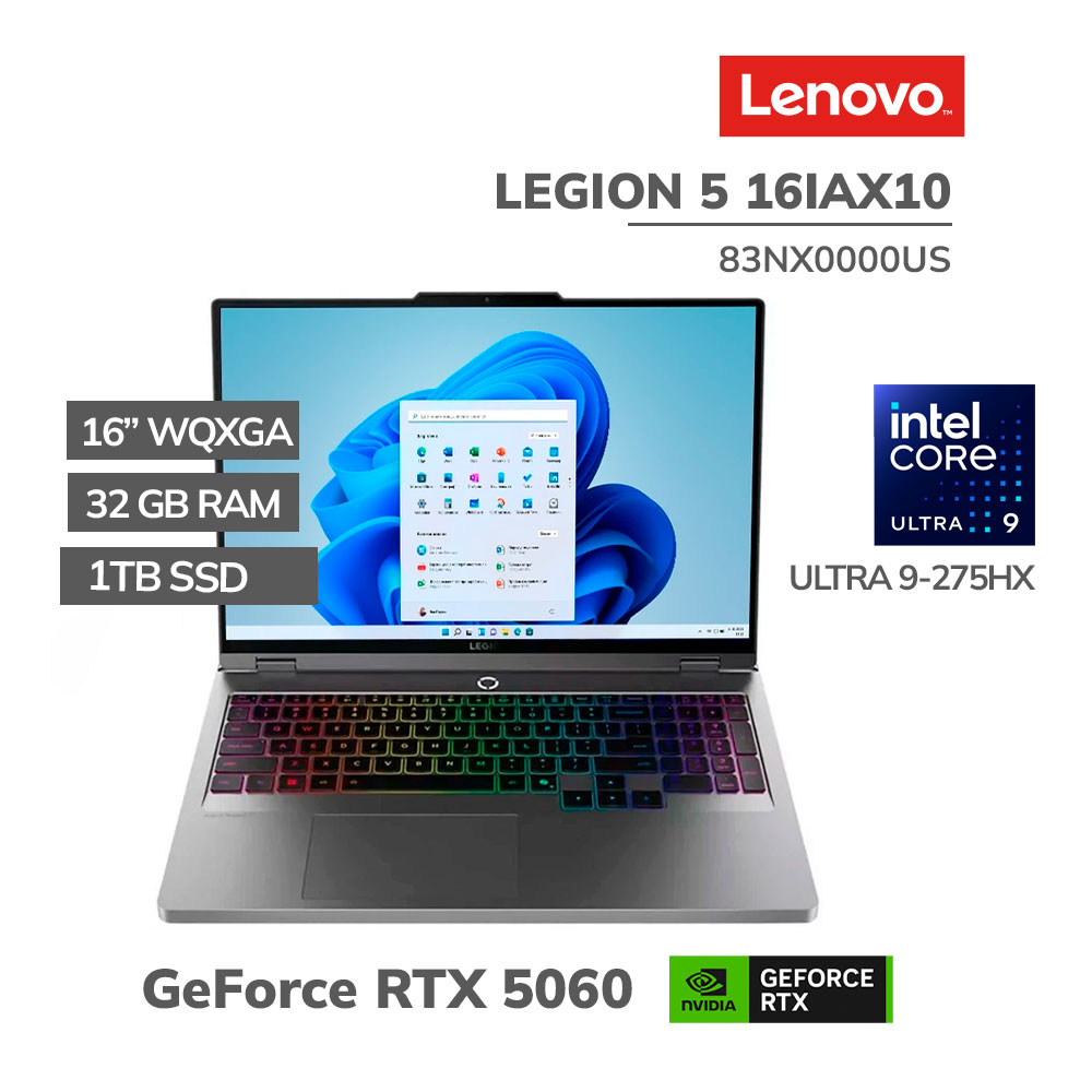 LAPTOP GAMER LENOVO LEGION 5 16IAX10 ULTRA 9-275HX 32GB 1TB SSD 16 WQXGA 240HZ GEFORCE RTX 5060 8GB WINDOWS 11 (83NX0000US)