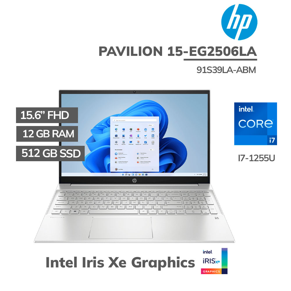 LAPTOP HP PAVILION 15-EG2506LA CORE I7-1255U 12GB 512GB SSD 15.6″ FHD WINDOWS 11 (91S39LA-ABM)