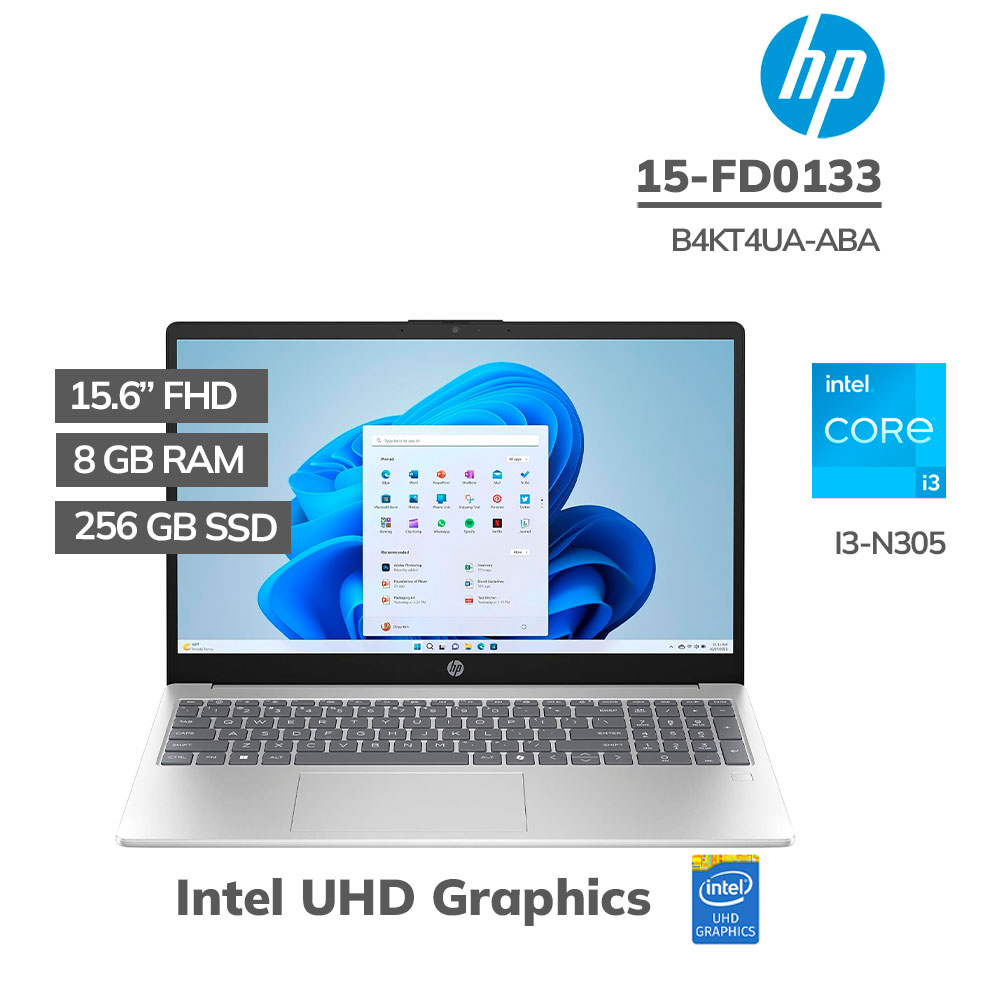 LAPTOP HP 15-FD0133 CORE I3-N305 8GB 256GB SSD 15.6″ FHD IPS WINDOWS 11 (B4KT4UA-ABA)