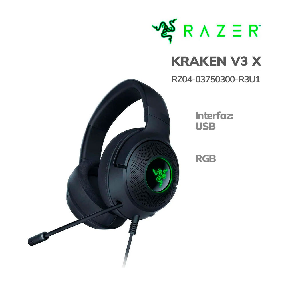 AUDIFONO GAMER RAZER KRAKEN V3 X (RZ04-03750300-R3U1) USB 7.1 LED-RGB