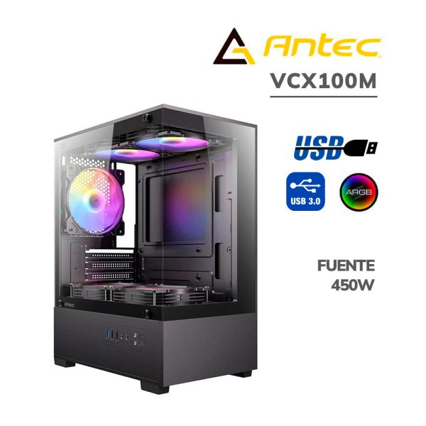 CASE GAMER ANTEC VCX100M ( VCX100M/450 ) 450W | VIDRIO TEMPLADO | LED-ARGB