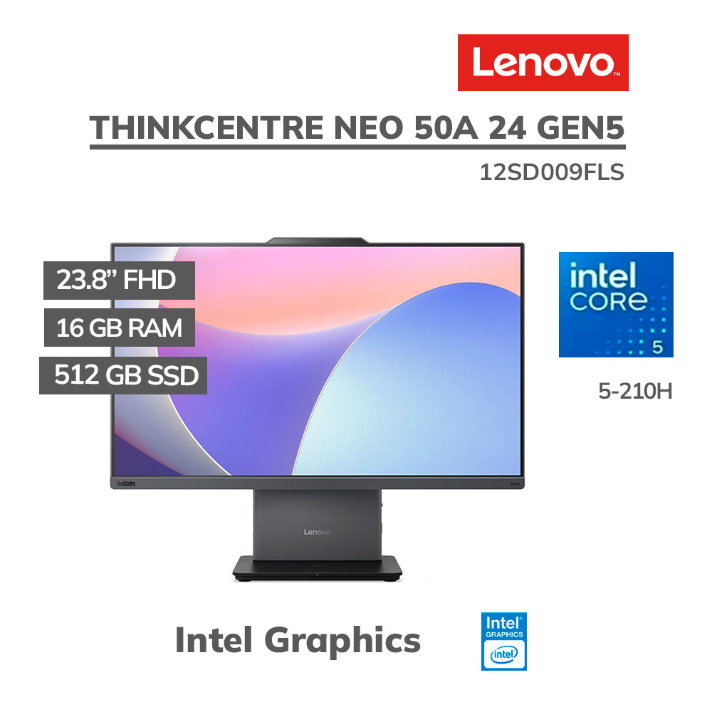 ALL IN ONE LENOVO THINKCENTRE NEO 50A 24 GEN5 INTEL CORE 5-210H 16GB 512GB SSD 23.8″ FHD IPS WINDOWS 11 PRO (12SD009FLS)