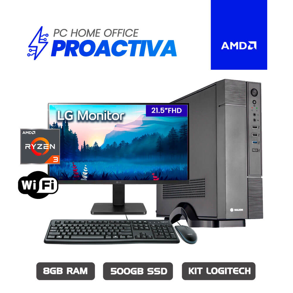 Computadora Proactiva AMD Ryzen 3 3200G A520M 8GB 500GB SSD 21.5″ FHD
