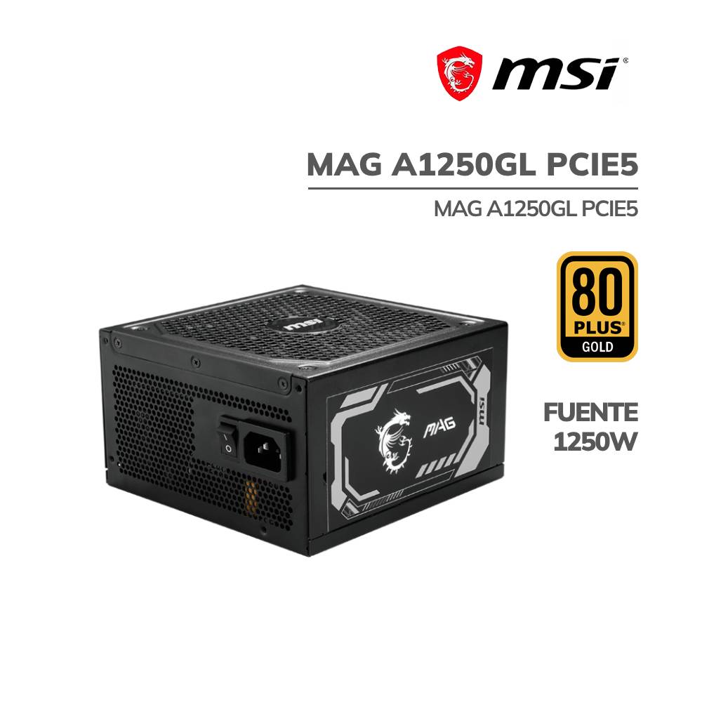 Fuente de Poder MSI 1250W (Mag A1250Gl Pcie5) 80 Plus Gold | Pcie 5.0 | Full Modular