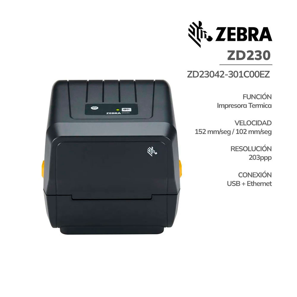 Impresora de Código de Barra Zebra ( ZD230 ) USB – Ethernet | 128Mb ROM – 128Mb SDRAM (ZD23042-301C00EZ)