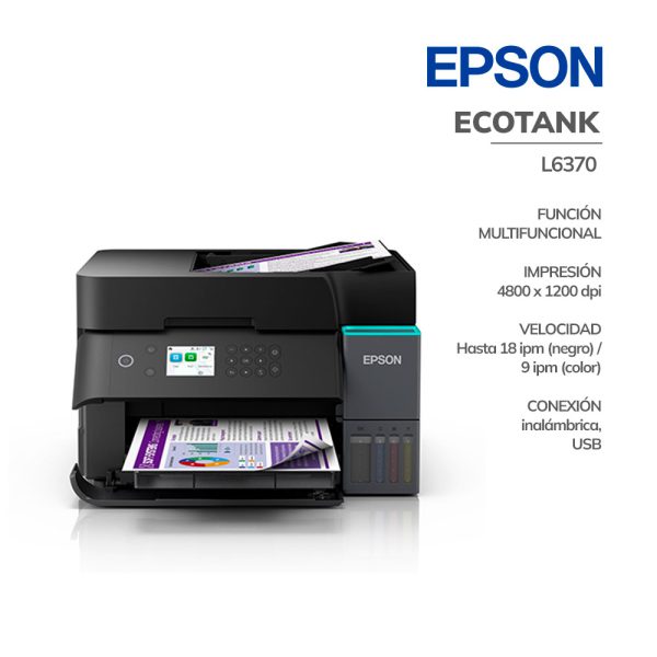 IMPRESORA EPSON L6370 ECOTANK ( C11CL43301 ) IMPRIME – ESCANEA – FOTOCOPIA – WIFI – ETHERNET – DUPLEX – ADF