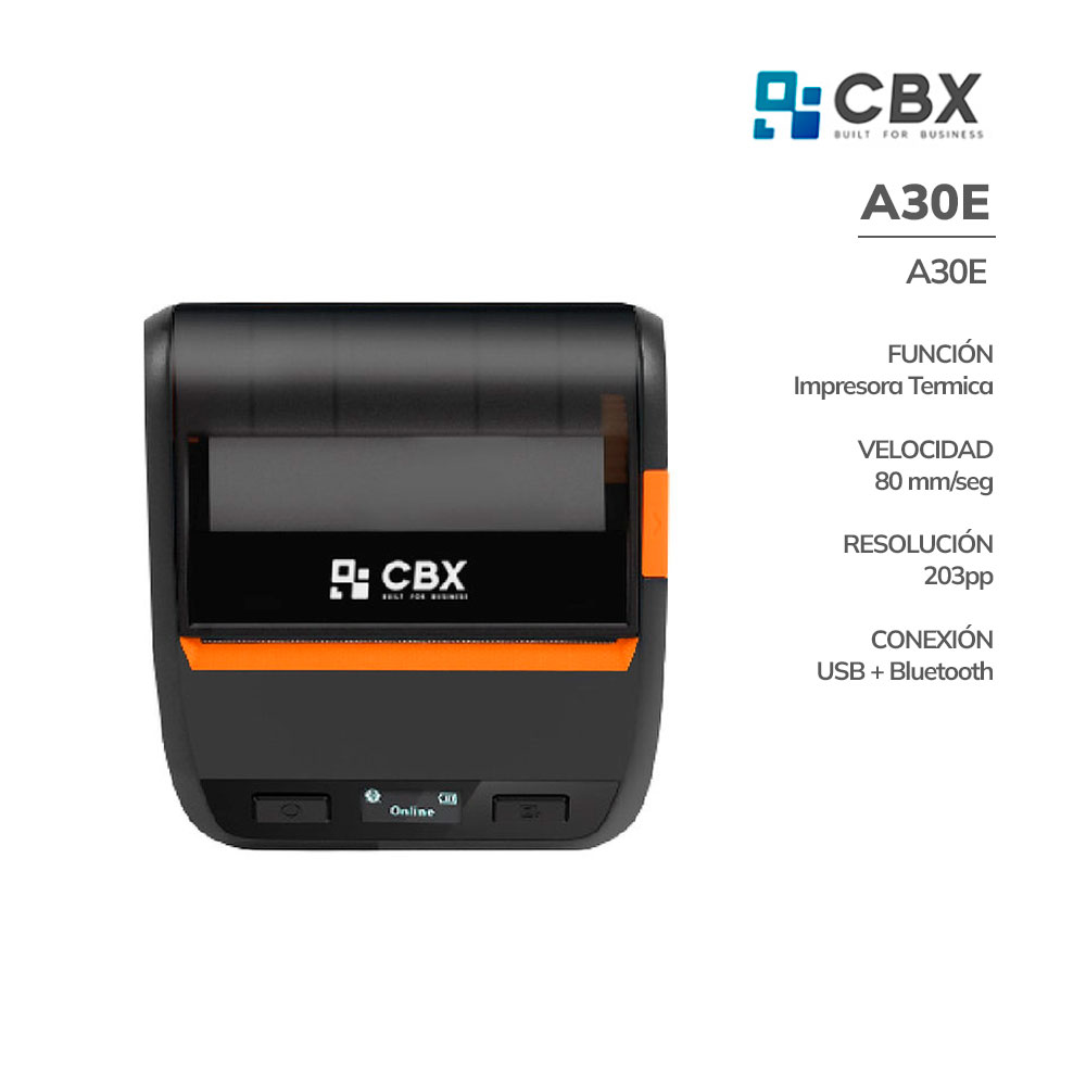 Impresora Ticketera Térmica CBX (A30E) Portatil USB – Bluetooth – LCD – 80Mm/Seg – Cortador Manual