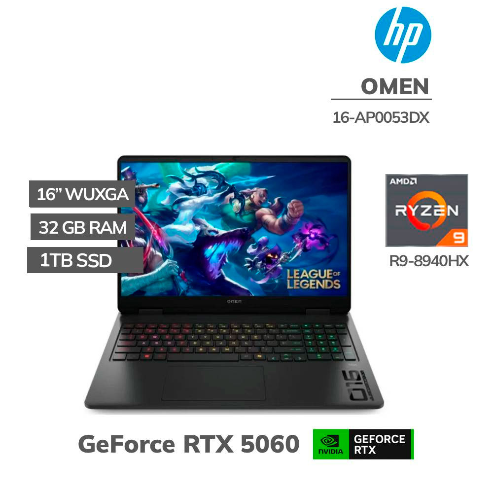 LAPTOP GAMER HP OMEN 16-AP0053DX RYZEN 9-8940HX 32GB DDR5 1TB SSD GEFORCE RTX 5060 8GB 16 WUXGA 144HZ WINDOWS 11