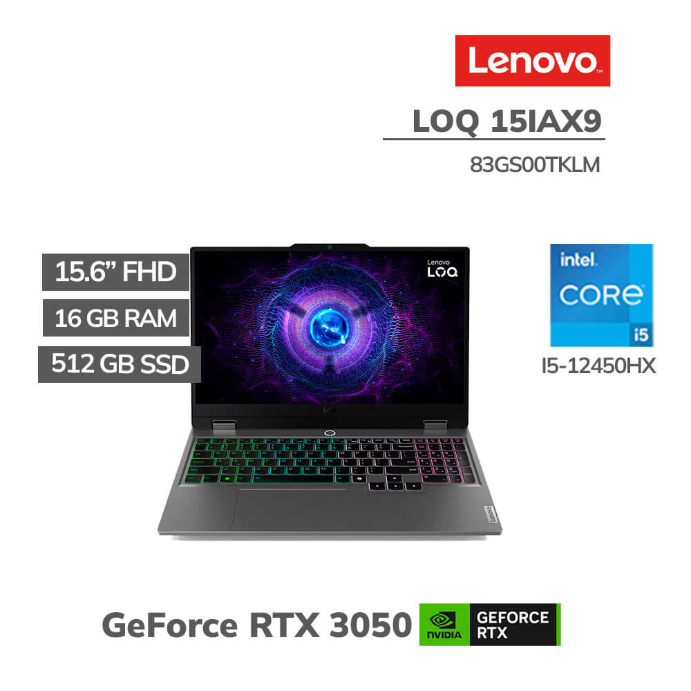 LAPTOP GAMER LENOVO LOQ 15IAX9 I5-12450HX 16GB DDR5 512GB SSD T VIDEO RTX 3050 6GB 15.6 FHD FREEDOS ( 83GS00TKLM )