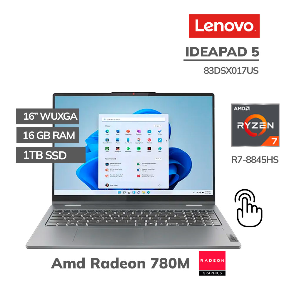 Laptop Lenovo Ideapad 5 2 In 1 Ryzen 7-8845Hs 16Gb 1Tb Ssd 16 WUXGA TouchScreen Windows 11 ( 83DSX017US )