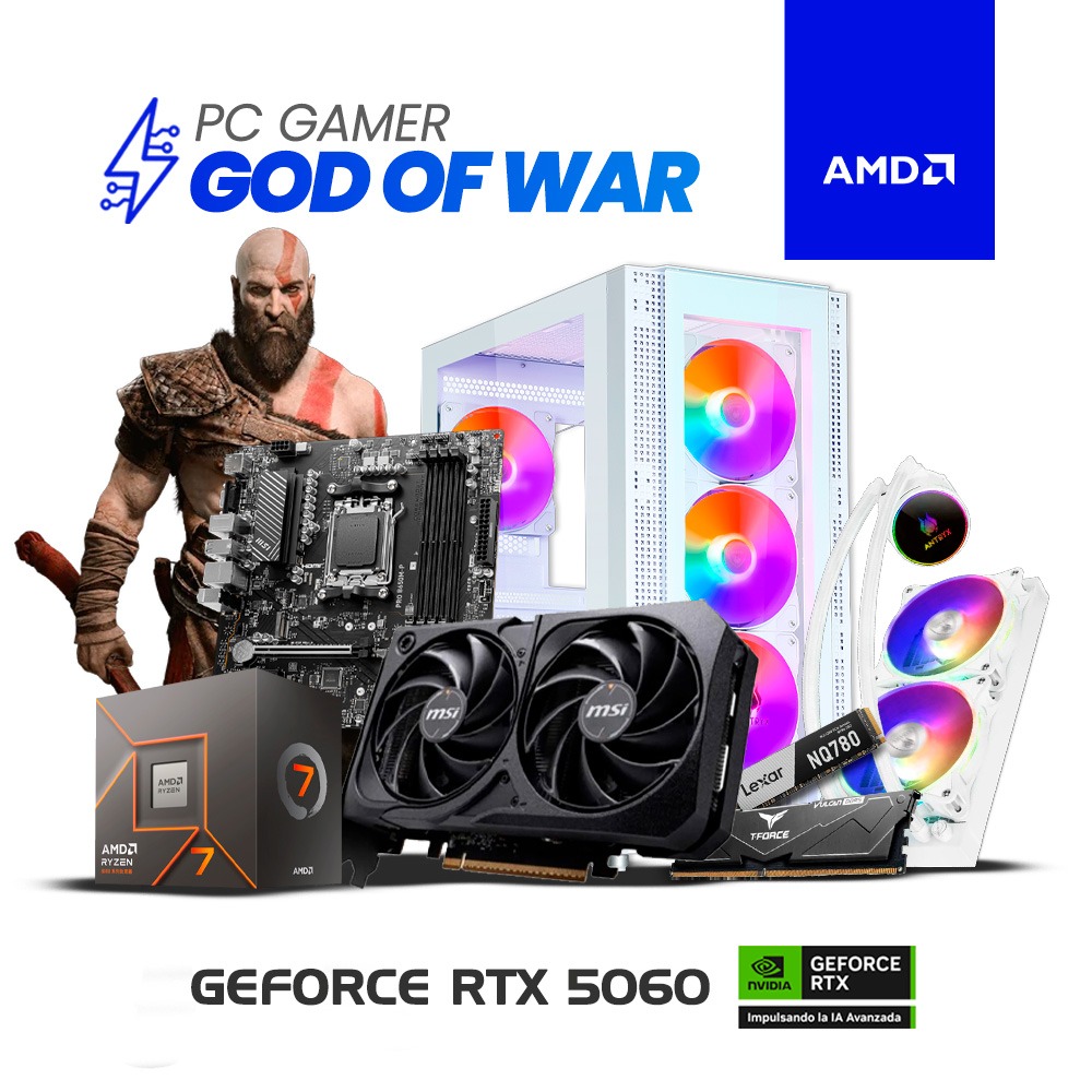 PC Gamer God of War – AMD Ryzen 7 8700F | 16GB RAM | 1TB SSD | T Video RTX 5060 8GB