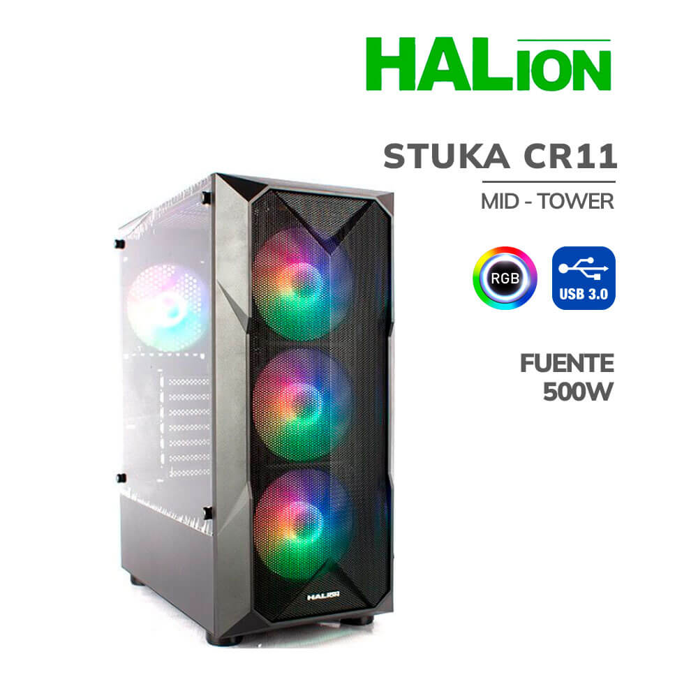- Case Gamer: Halion Stuka (CR11) 500W | Vidrio Templado | LED-RGB