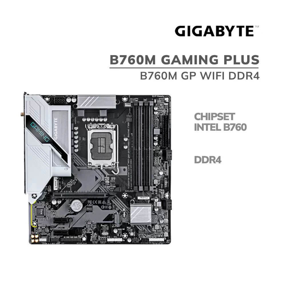 - Mainboard: Gigabyte B760M Gaming Plus Wifi DDR4 (B760M GP WIFI DDR4) LGA 1700