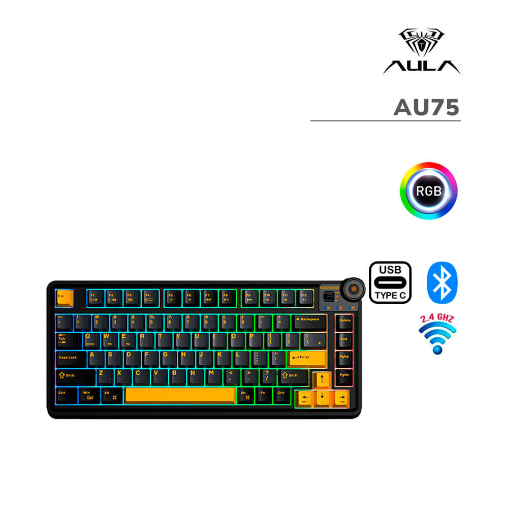 TECLADO GAMER AULA AU75 (AU75) WIRED – BT – WIRELESS | BLACK/YELLOW | SWITCH MECHANICAL | LED-RGB