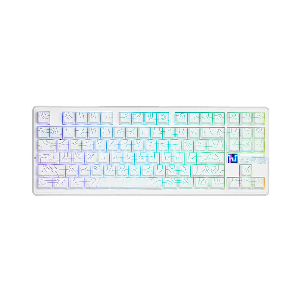 TECLADO GAMER AULA F87 PRO V2 (F87 PRO V2) WIRED – BT – WIRELESS | WHITE CONTOUR | SWITCH STAR VECTOR | LED-RGB