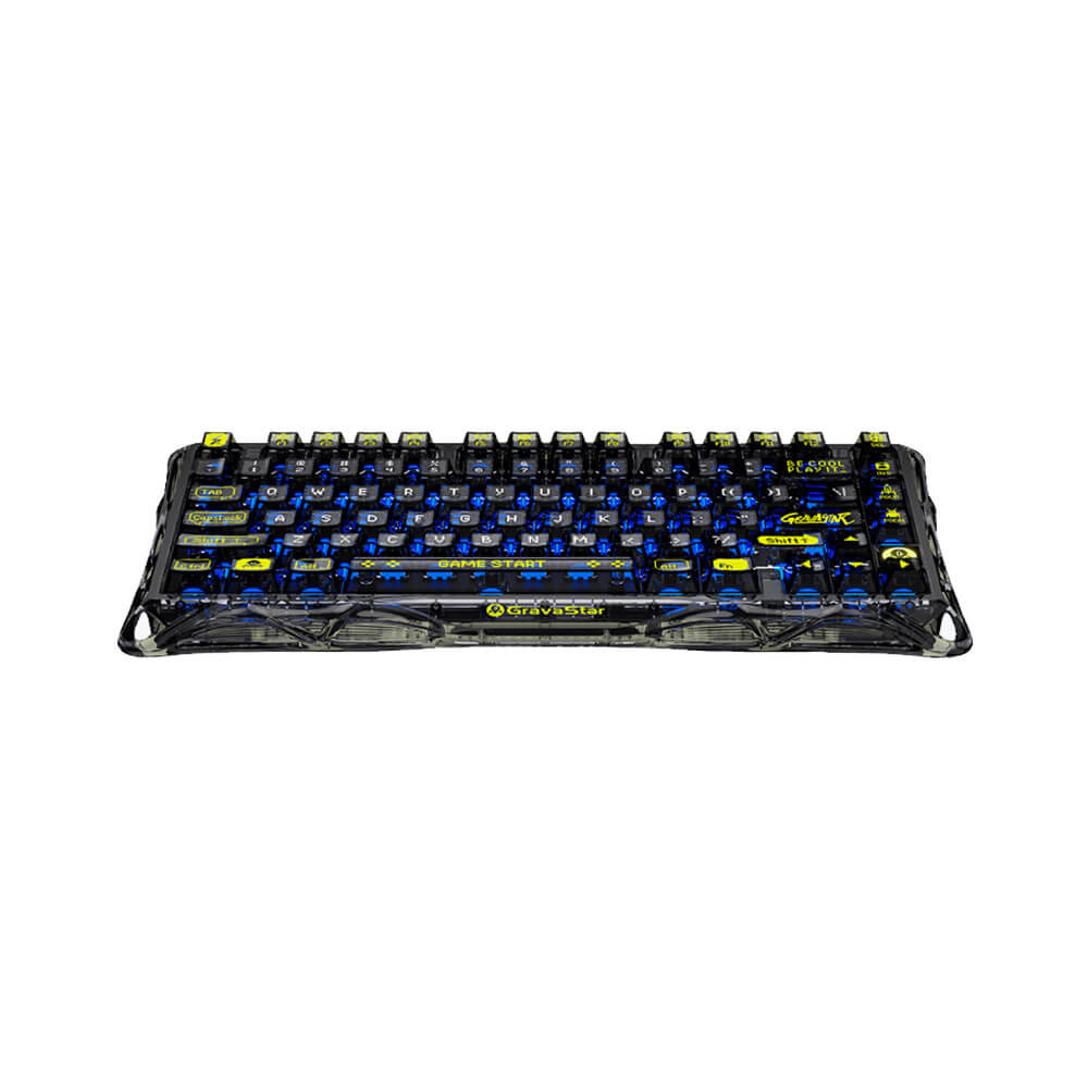 • Interruptores: Interruptores de tecla lineales GravaStar x BSUN personalizados; fuerza de actuación de 40 gf, recorrido previo de 2 mm, recorrido total de 3,6 mm