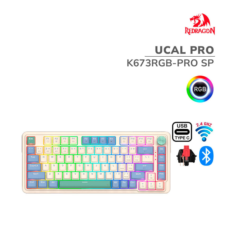 TECLADO GAMER REDRAGON UCAL PRO (K673RGB-PRO SP) SWITCH RED | WIRED – BT – WIRELESS | LED-RGB