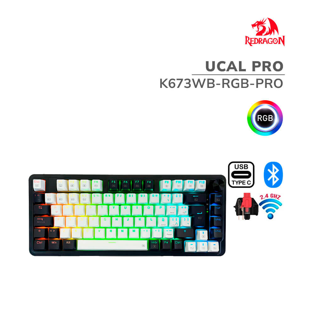 TECLADO GAMER REDRAGON UCAL PRO (K673WB-RGB-PRO) WIRELESS – BT – USB-C | SWITCH RED | WHITE/BLACK | LED-RGB