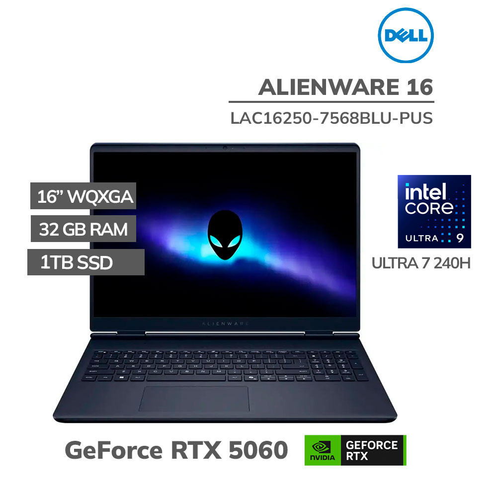 LAPTOP GAMER DELL ALIENWARE 16 CORE ULTRA 7-240H 32GB 1TB SSD GEFORCE RTX 5060 8GB 16″ WQXGA WINDOWS 11 (LAC16250-7568BLU-PUS)