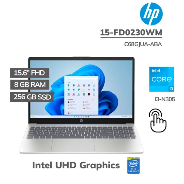 LAPTOP HP 15-FD0230WM I3-N305 8GB 256GB SSD 15.6 FHD TOUCHSCREEN WINDOWS 11 (C68GJUA-ABA)