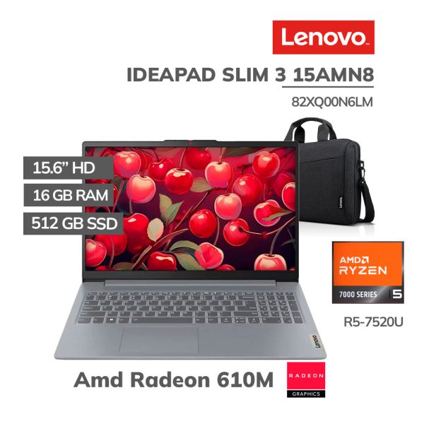 LAPTOP LENOVO IDEAPAD SLIM 3 15AMN8 RYZEN 5 -7520U 16GB DDR5 512GB SSD 15.6″ FHD FREEDOS ( 82XQ00N6LM )